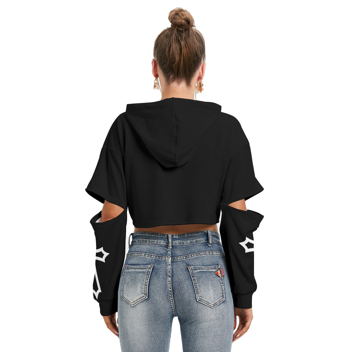- Short top with long sleeves, cutouts, and drawstring