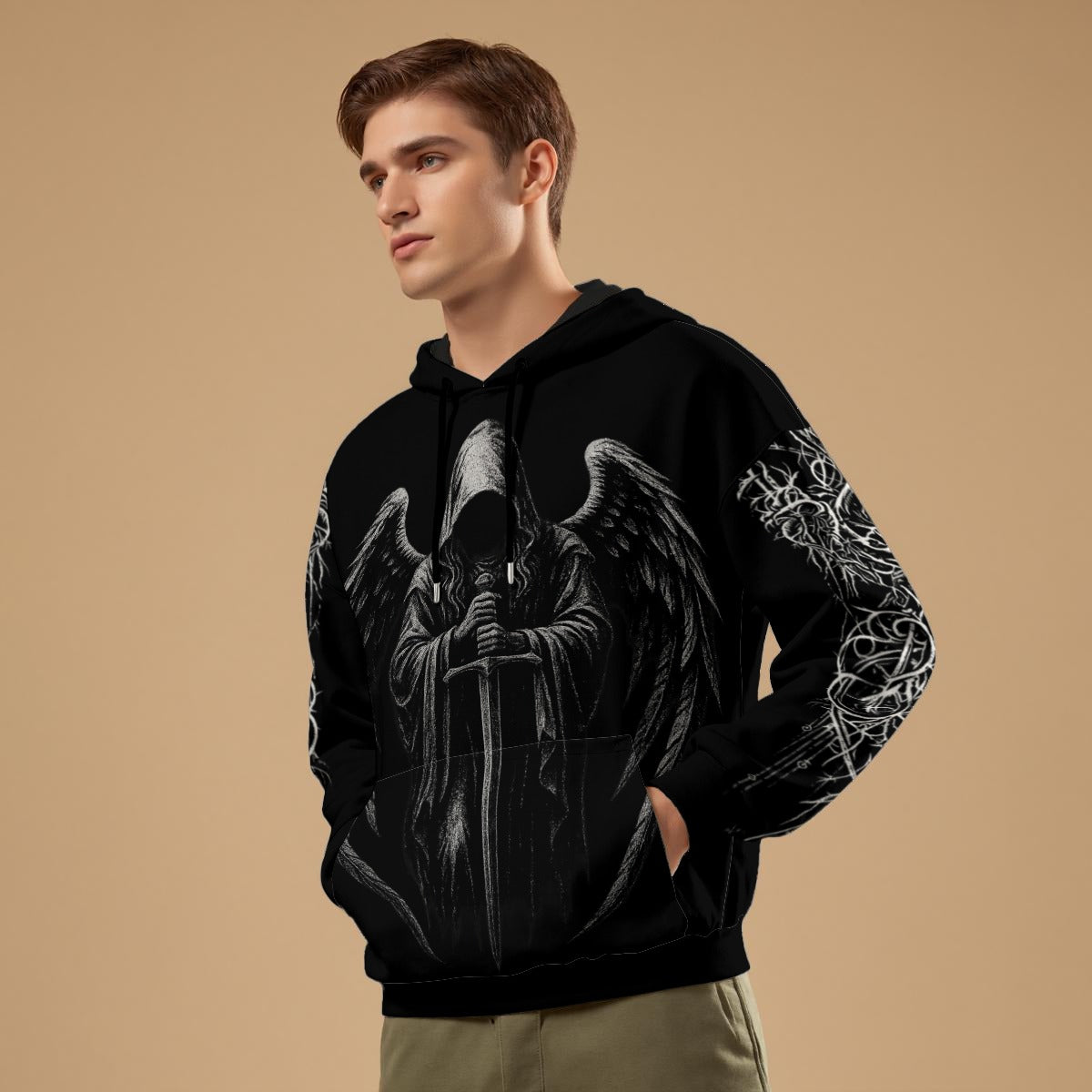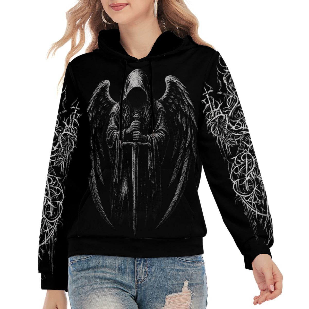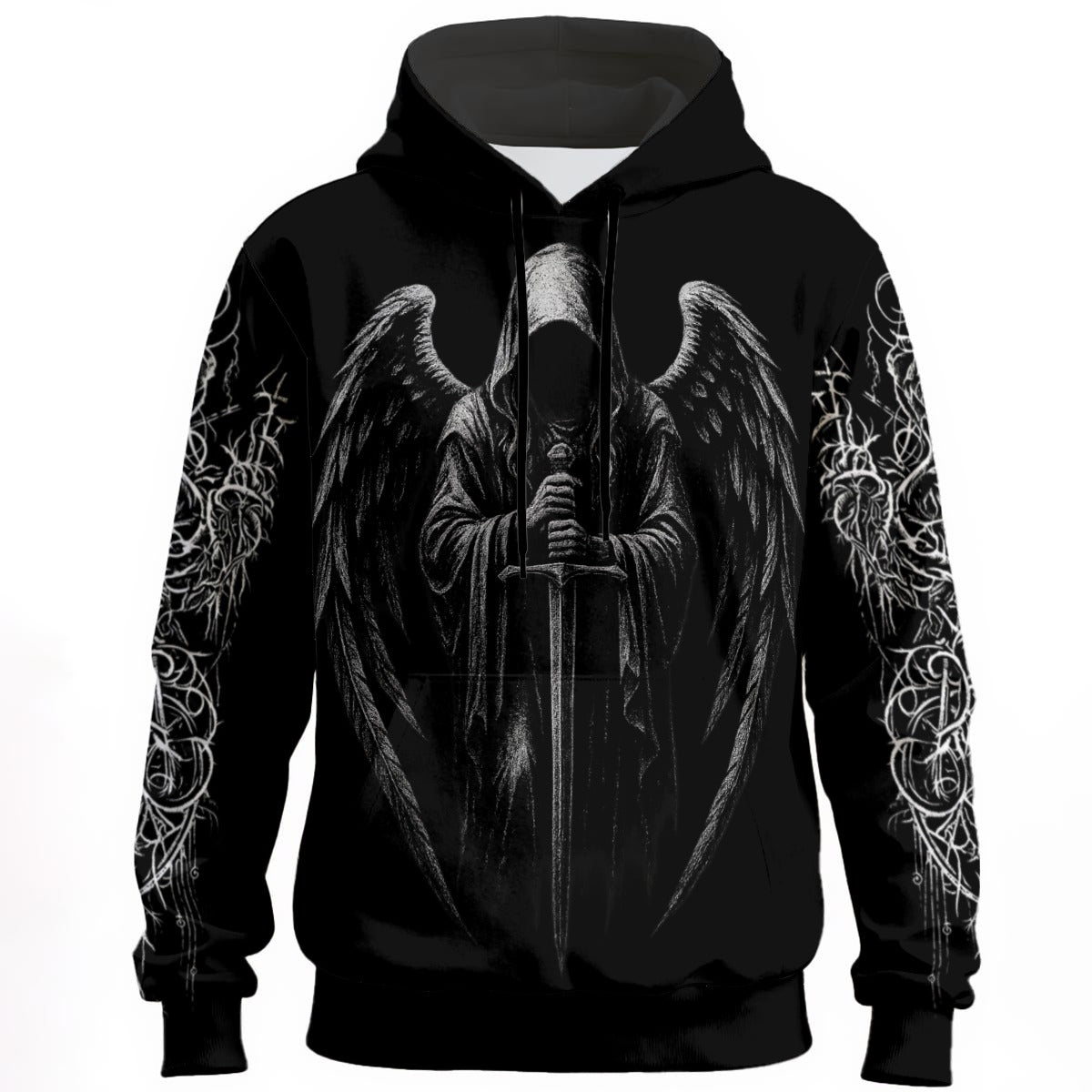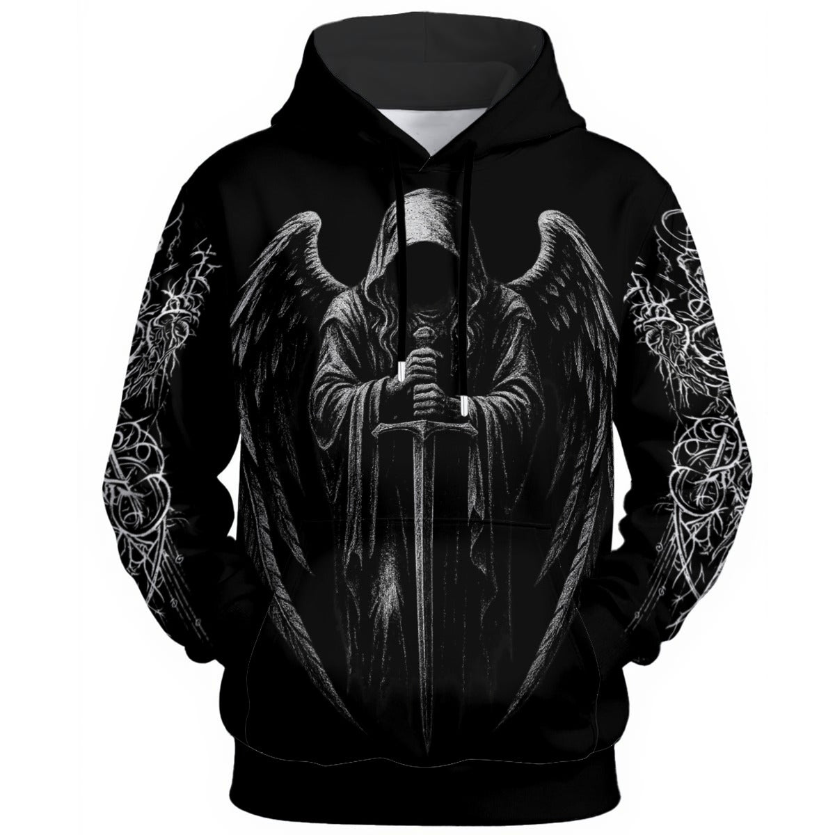 Dark Gothic Design Hoodie with Grim Reaper and Wings