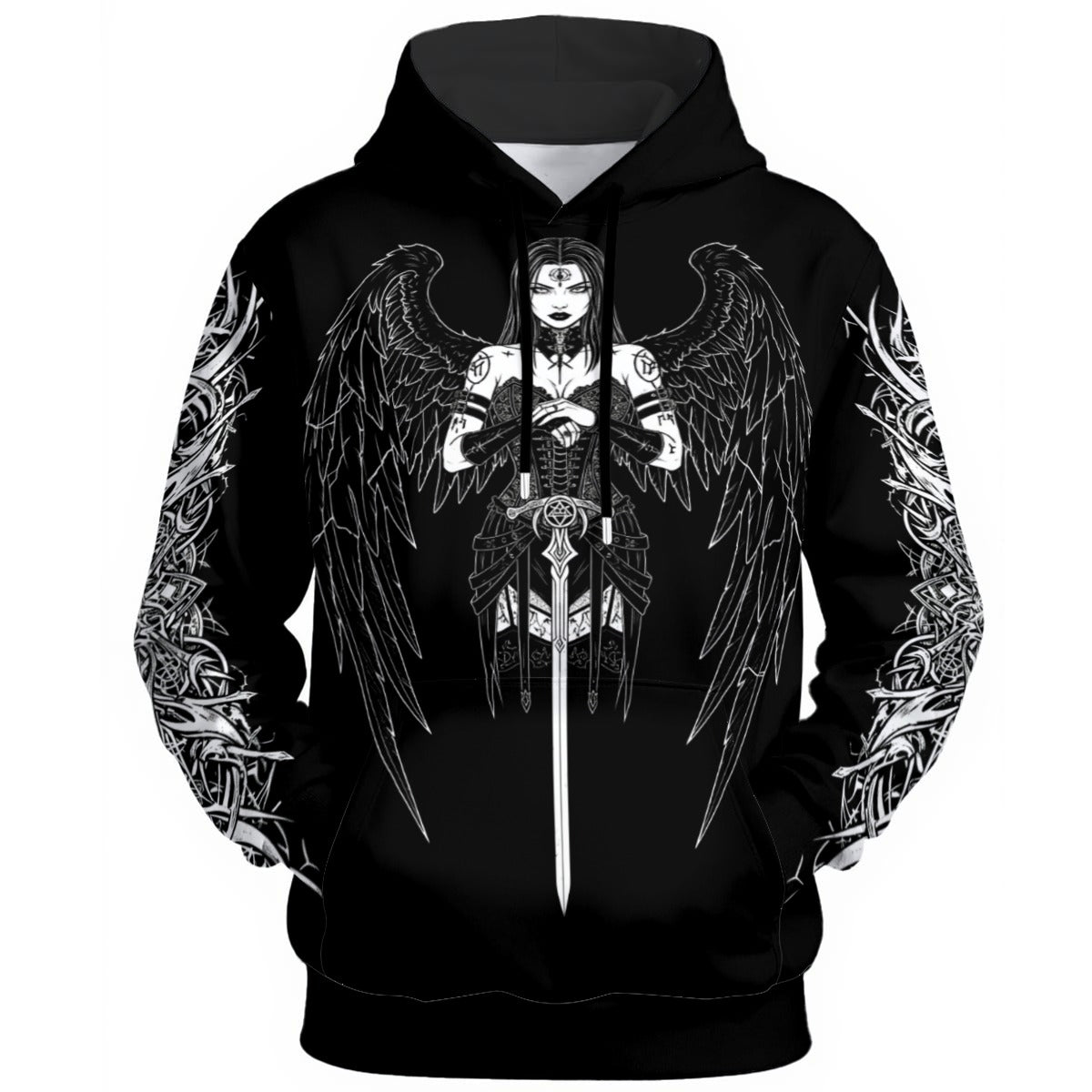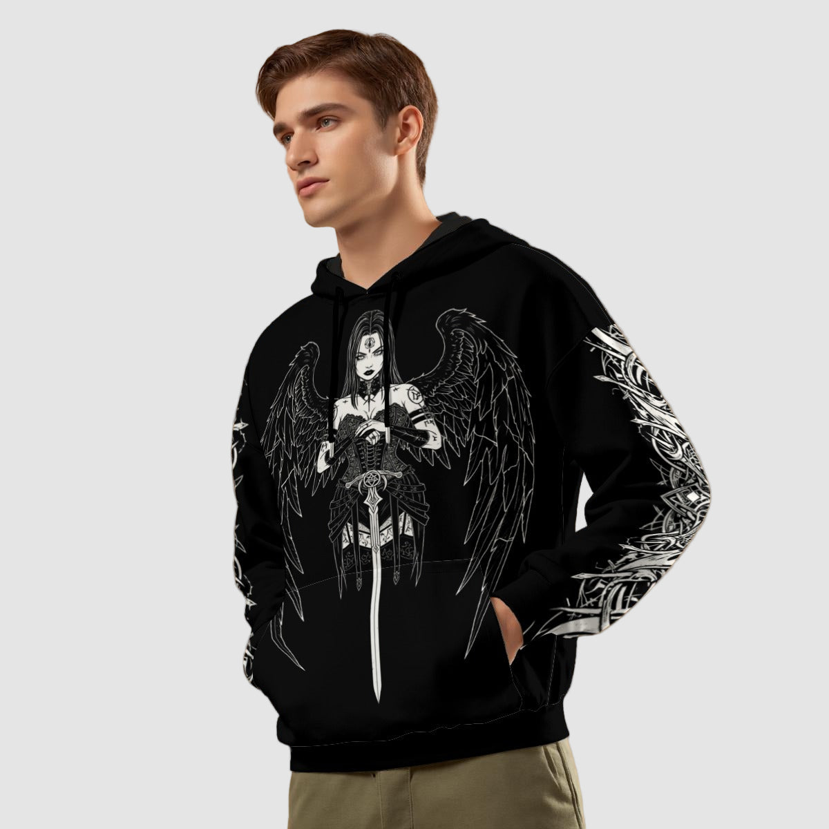 - Long sleeve, loop pattern inside, with drawstring, front pocket