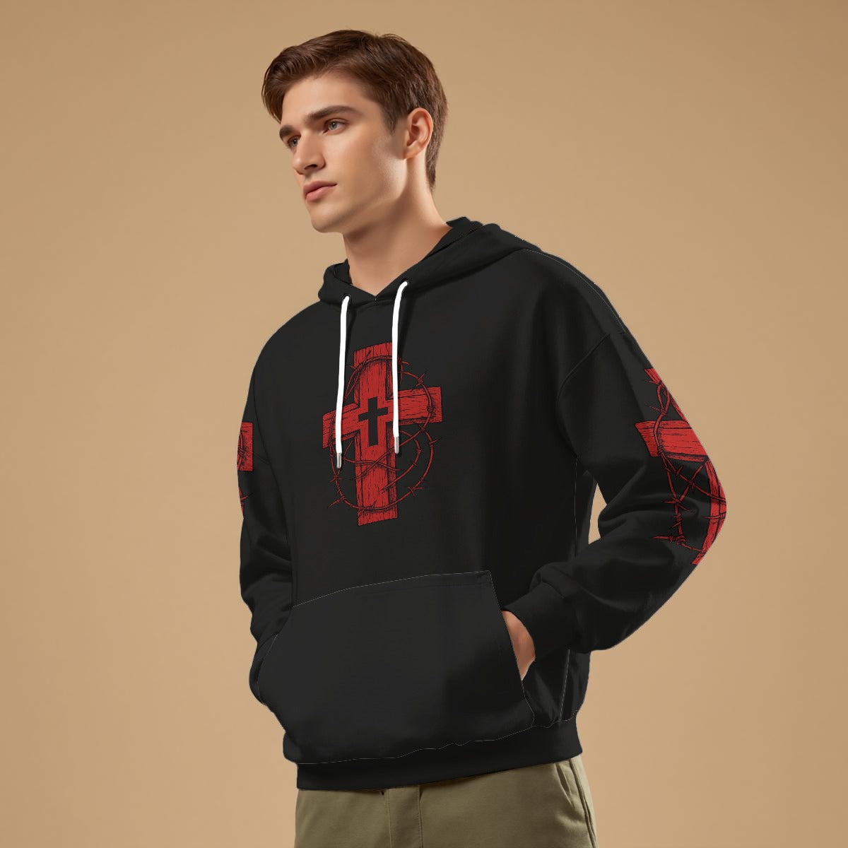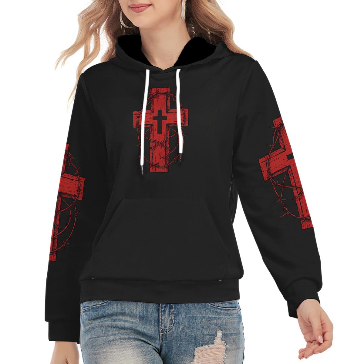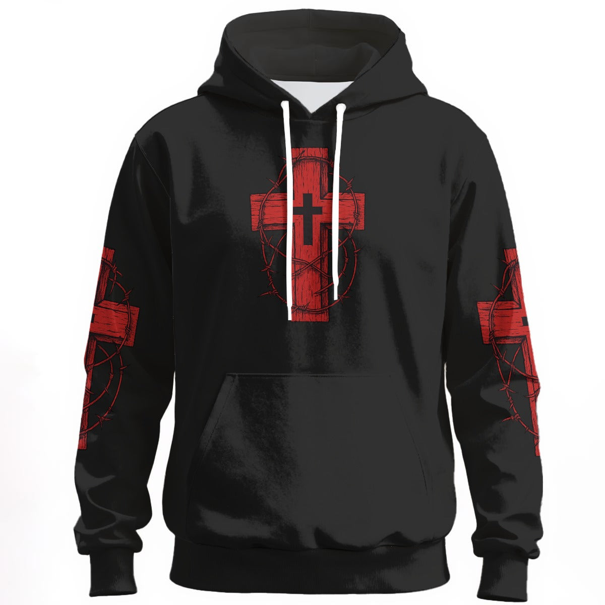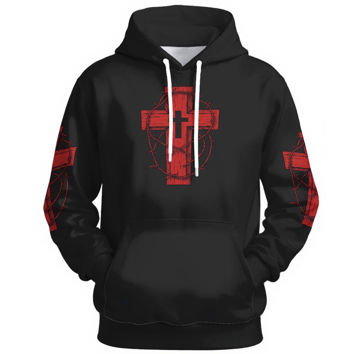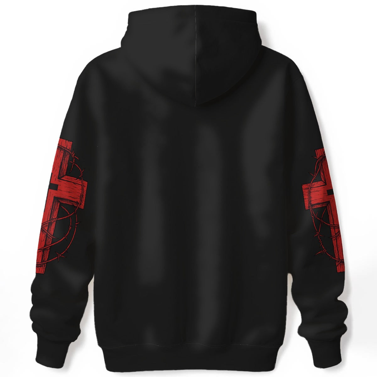 Gothic hoodie with red cross and crown of thorns